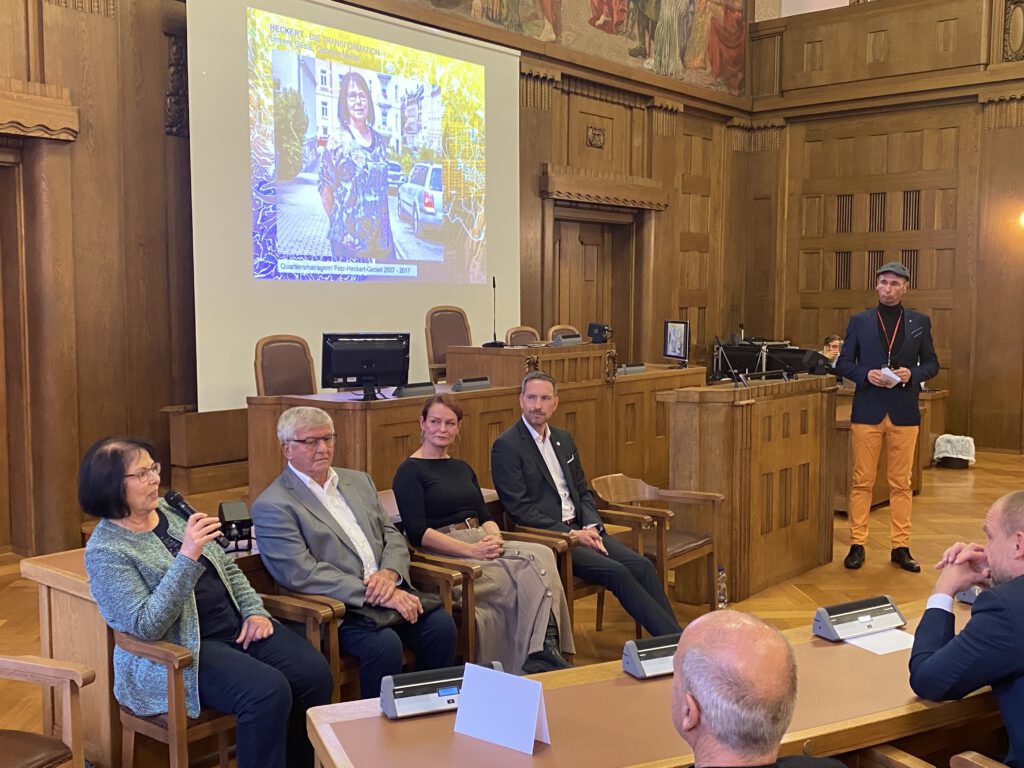 Zur Buchprämiere im Chemnitzer Rathaus sprachen im Podium Alt-OBM Dr. Peter Seifert, Staatsminister a.D. Dr. Albrecht Buttolo und weiteren Akteuren aus Stadtplanung und Gesellschaft über diese prägende Epoche. Unser Bürgerverein war mit der ehemaligen Quartiersmanagerin Gabriele Meinel ebenfalls im Podium vertreten.